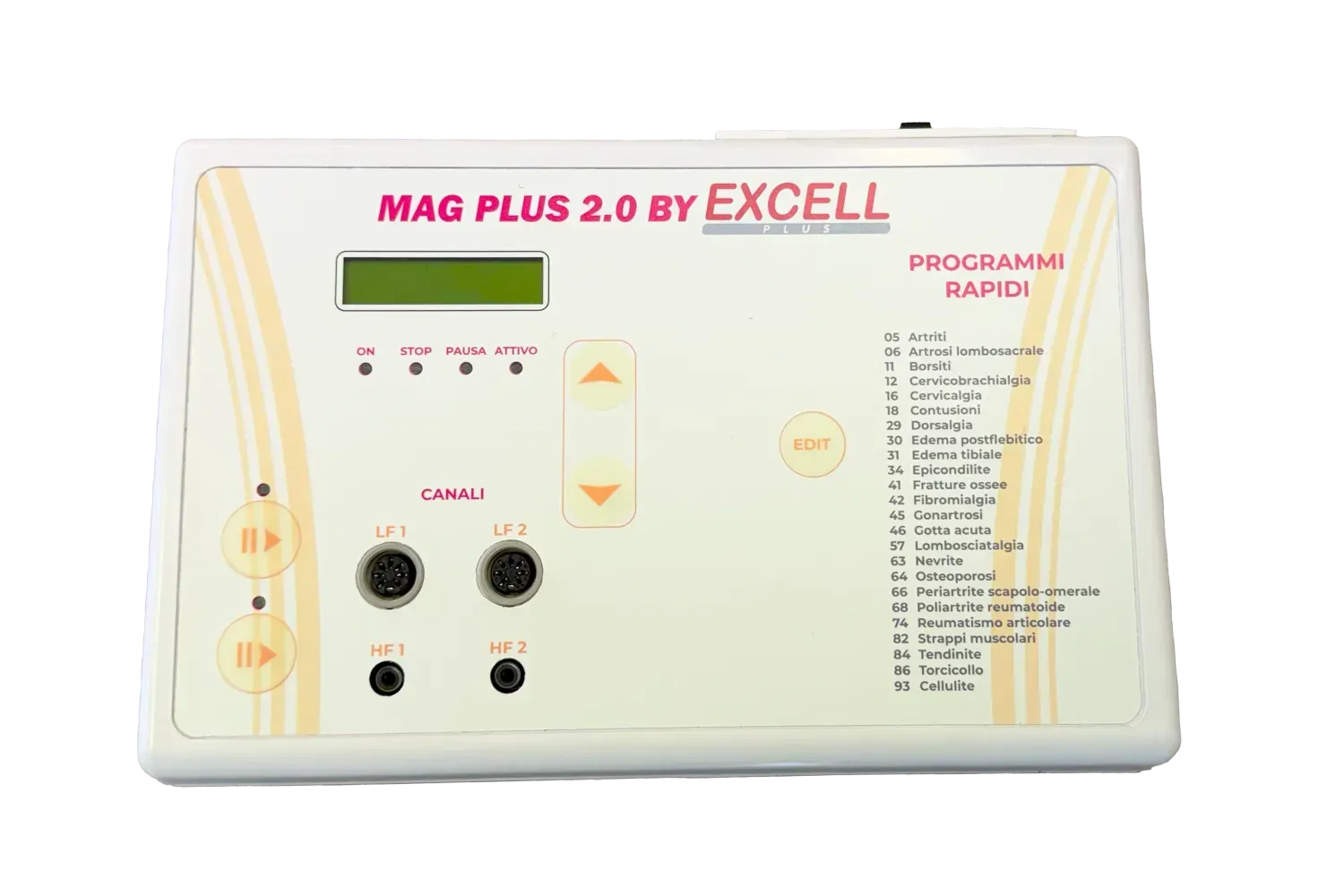 EXCELL MAG PLUS 2.0® è il dispositivo di magnetoterapia ad alta e bassa frequenza che unisce potenza, precisione e semplicità d’uso.